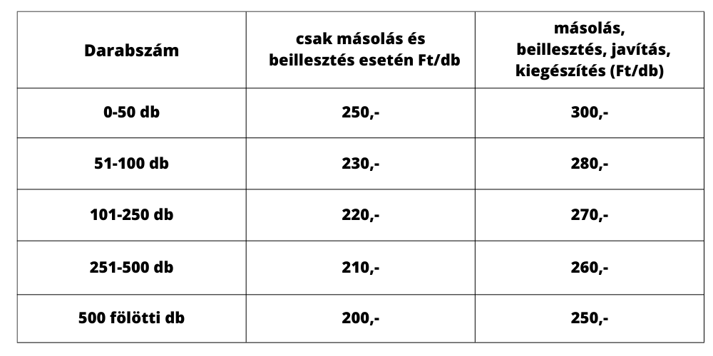 - termékleírások elkészítése magyar nyelven: 1000 Ft/db